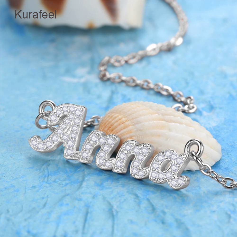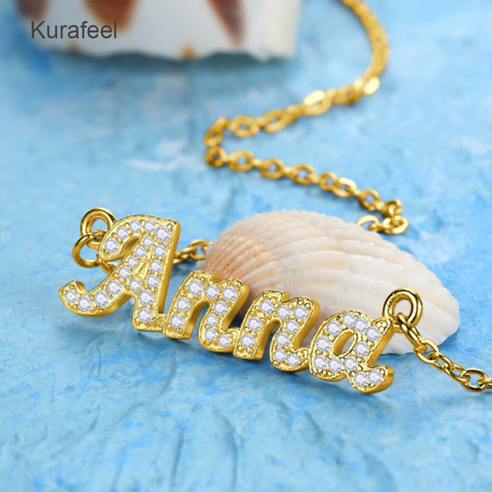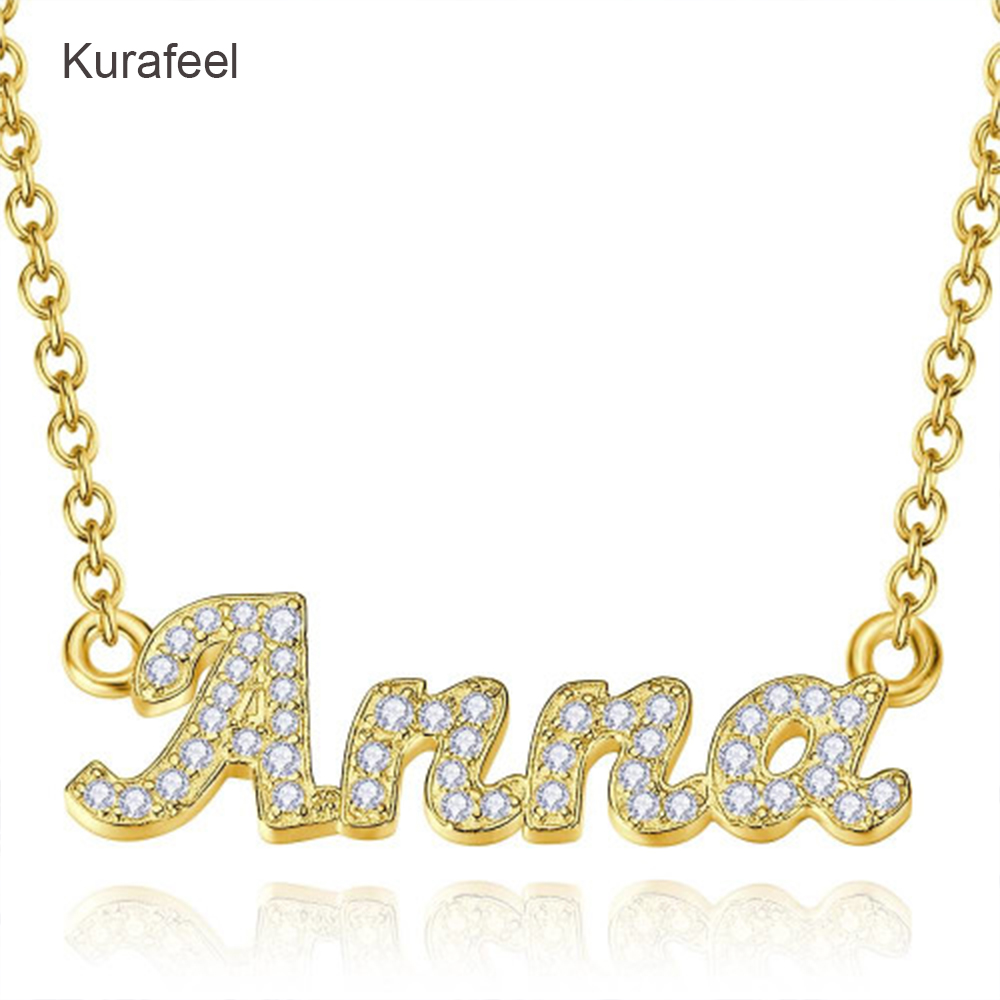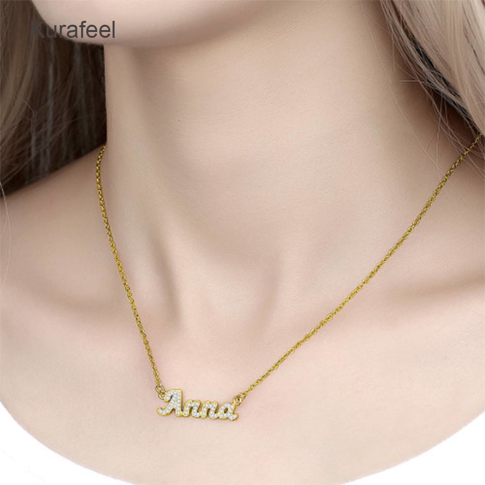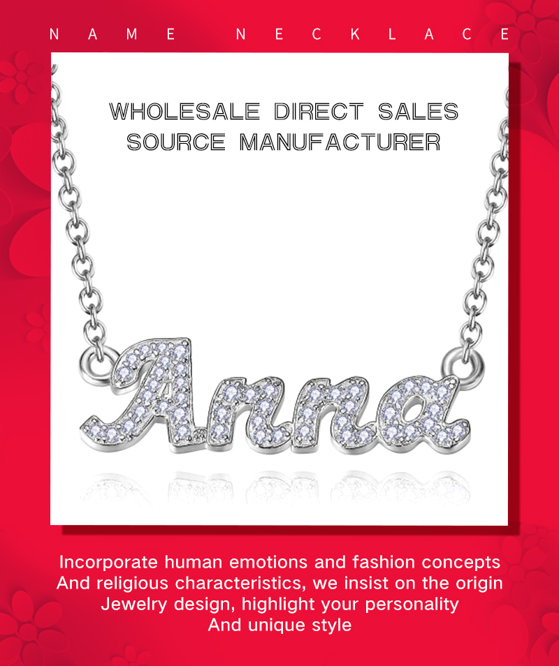Name:The latest product best-selling fashion one-of-a-kind Custom jewelry shiny rhinestones custom script letter name necklace