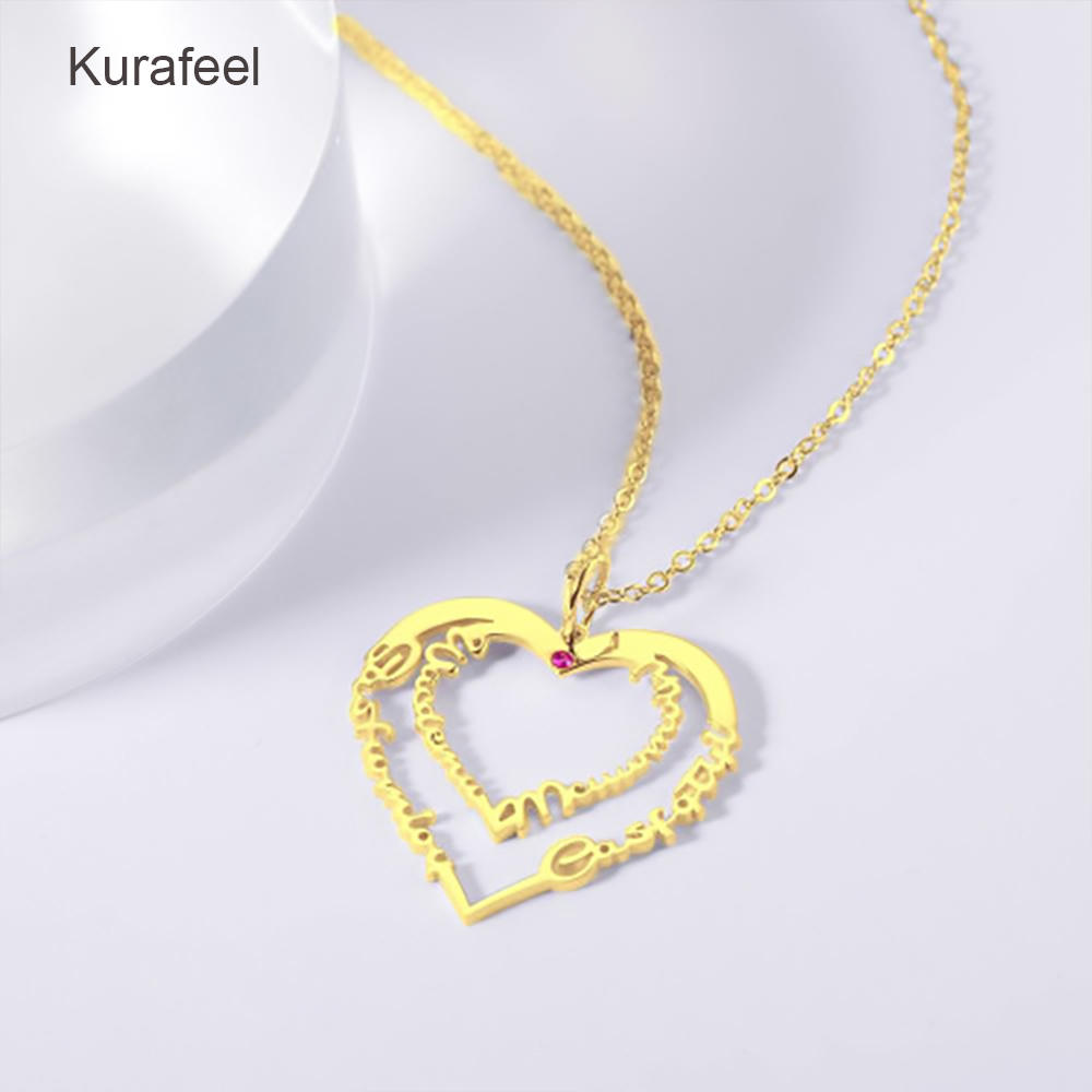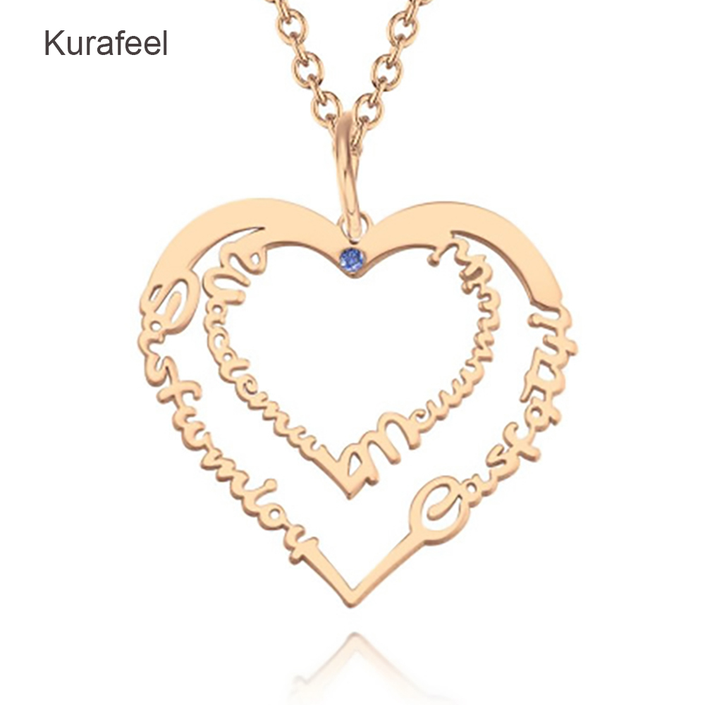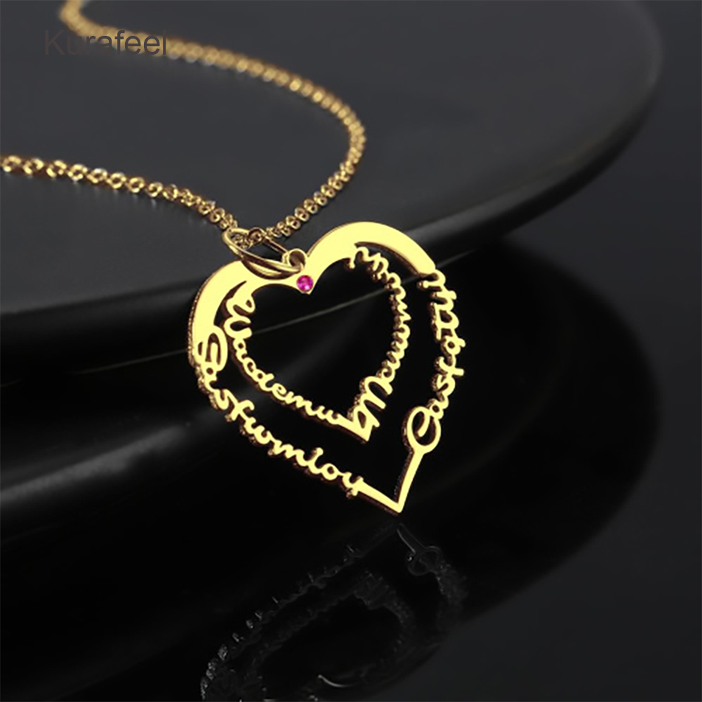 Name:Wholesale Custom Fashion Design Women Double Heart Birthstone Named Necklace 925 Sterling Silver Necklace