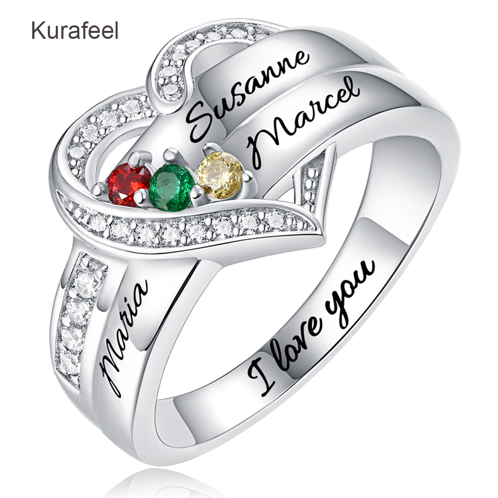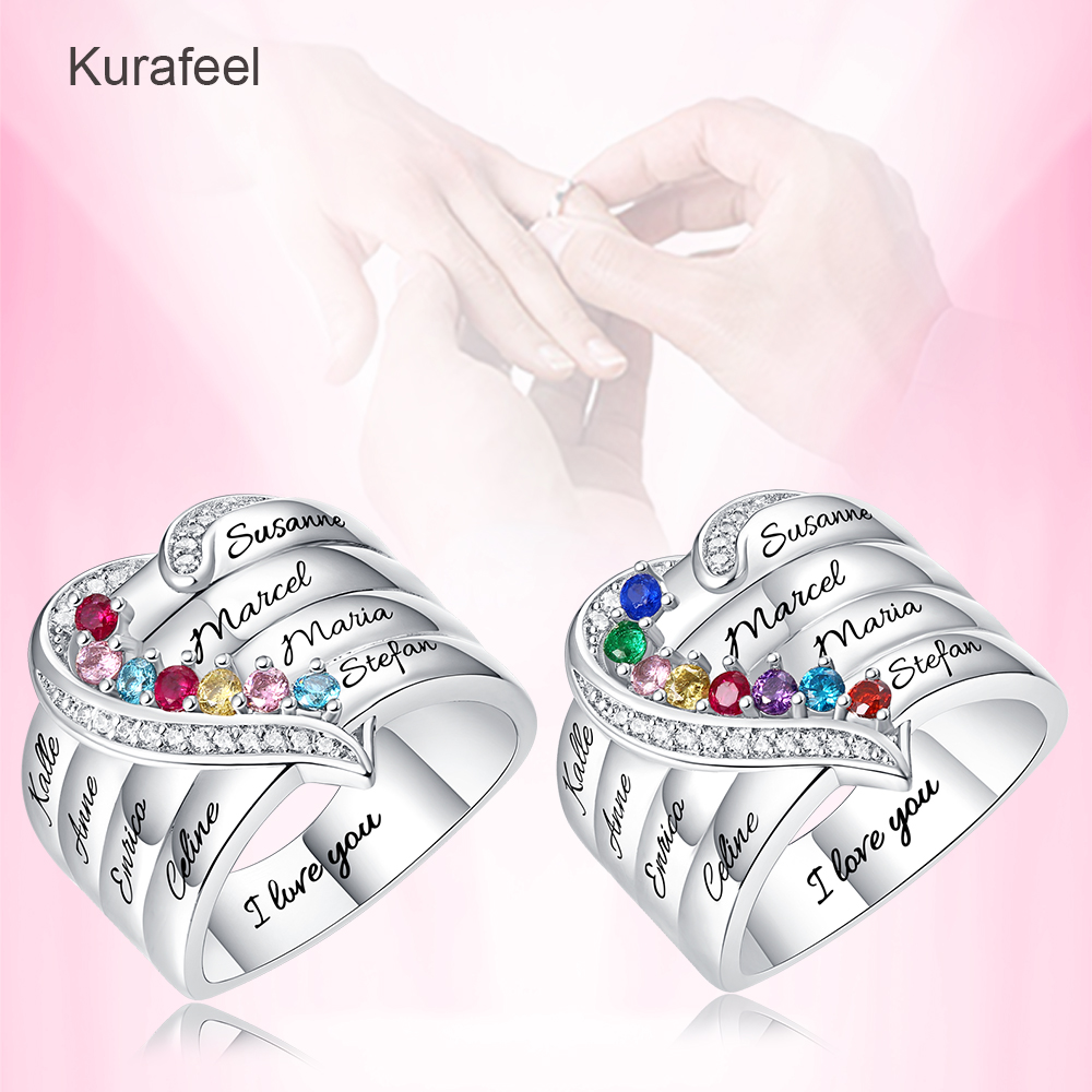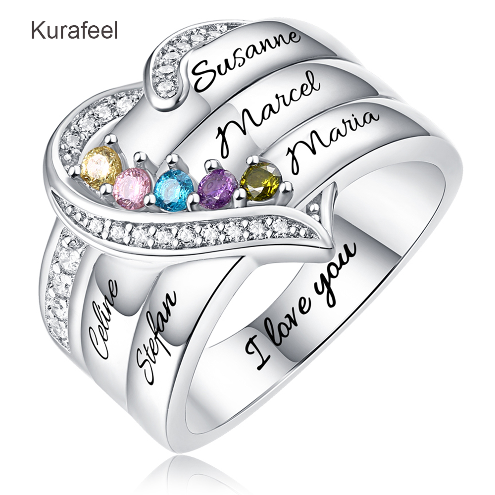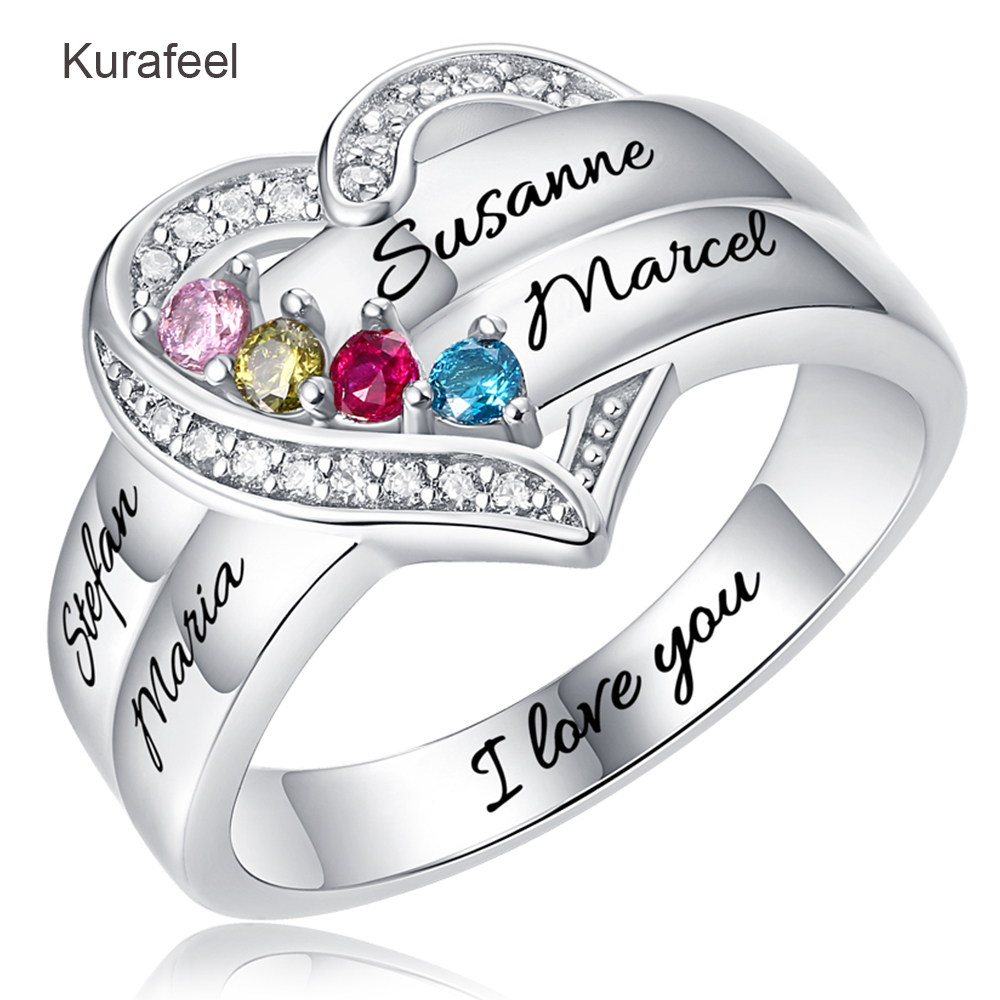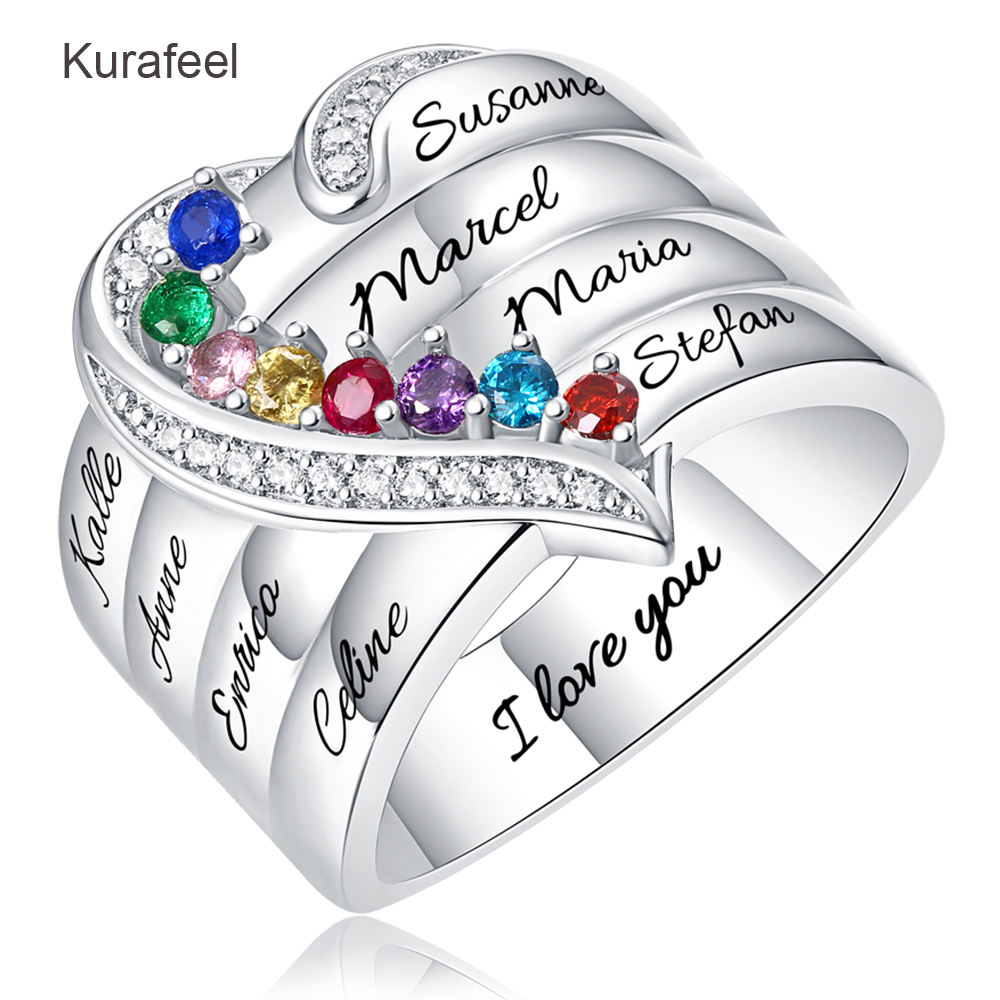 Name:Ring Sterling Silver Custom Family Series Lettering Birthstone Ring