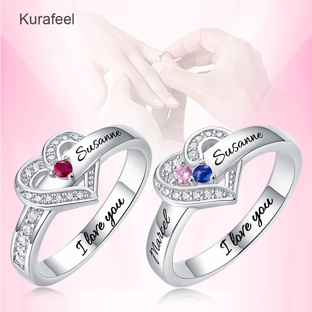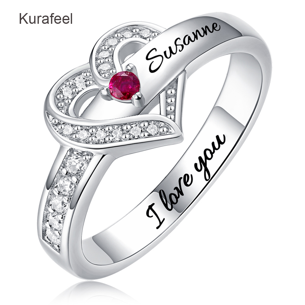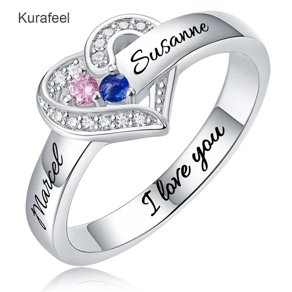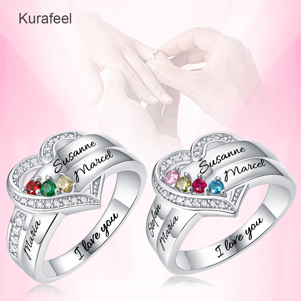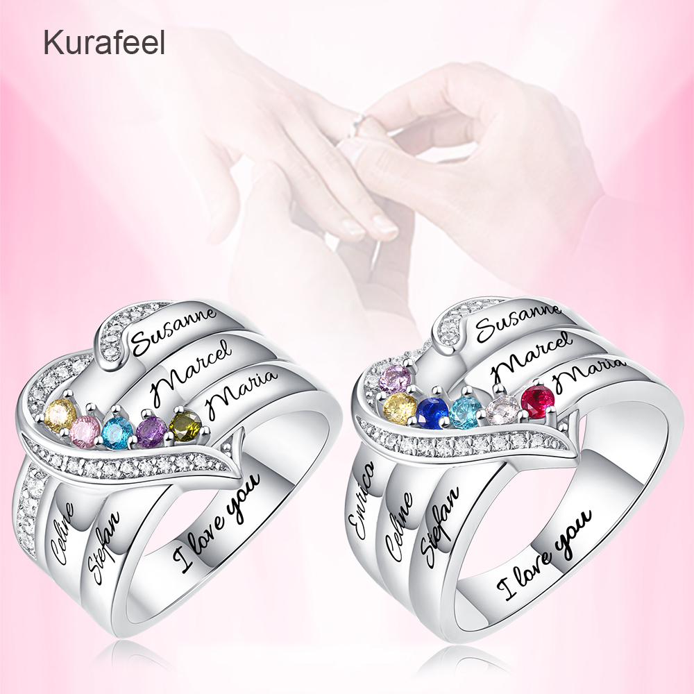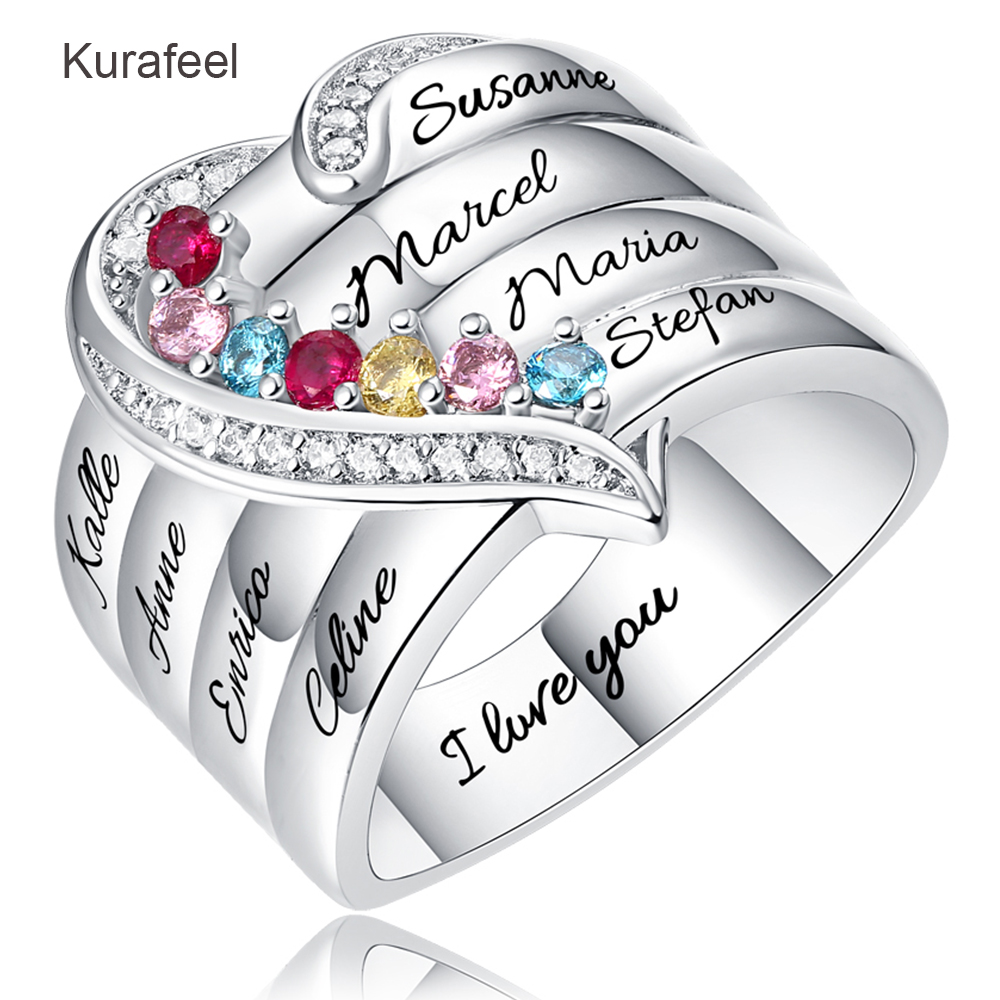 Name:Ring Sterling Silver Custom Family Series Lettering Birthstone Ring